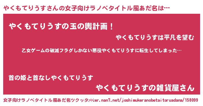 | 意味不明あだ名 | 『住所不定無職やくもてりうす(14歳)』 |