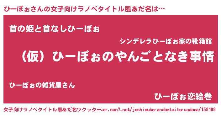 | 胡散臭い通販商品みたいなあだ名 | 『必ず成功するブレスレット…その名も「ひーぼぉ」』 |