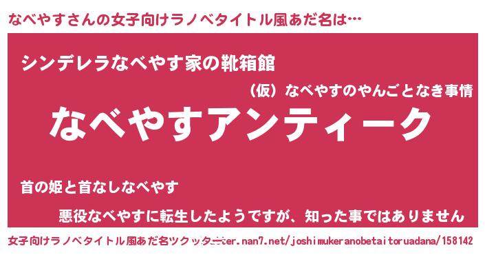 | 胡散臭い通販商品みたいなあだ名 | 『テレビで話題のアガリクス…その名も「なべやす」』 |
