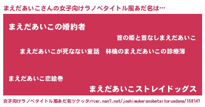 | 男性向けラノベタイトル風あだ名 | 『魔弾の王とまえだあいこ』 |