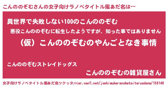 | 男性向けラノベタイトル風あだ名 | 『こんののぞむの憂鬱』 |
