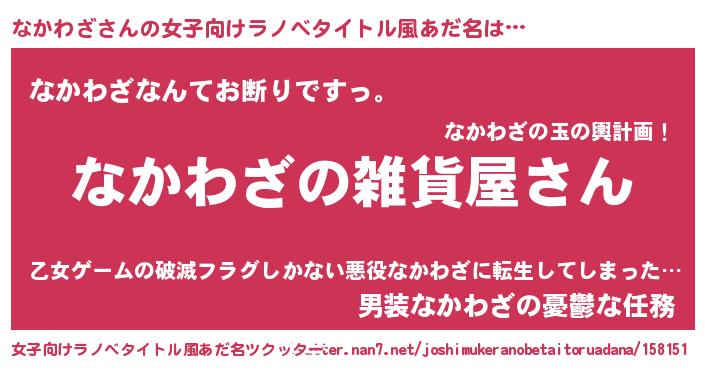 | 男性向けラノベタイトル風あだ名 | 『やはりなかわざの青春ラブコメはまちがっている 』 |