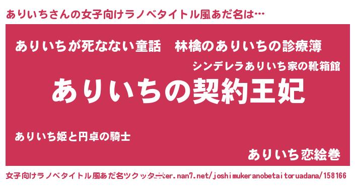 | 男性向けラノベタイトル風あだ名 | 『ありいちという概念が存在しない退屈な世界 』 |
