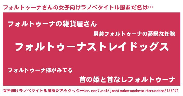 | 男性向けラノベタイトル風あだ名 | 『Re:フォルトゥーナから始める異世界生活』 |
