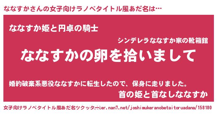 | 男性向けラノベタイトル風あだ名 | 『ダンジョンにななすかを求めるのは間違っているだろうか』 |