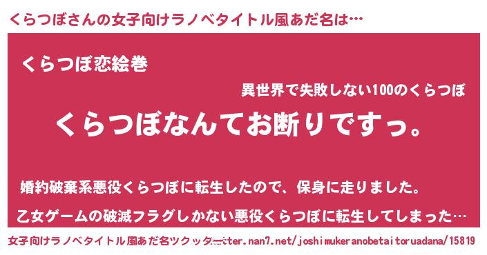 | 意味不明あだ名 | 『自称くらつぼ』『永久保存くらつぼ』 |
