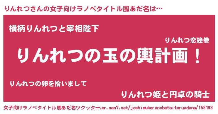 | 男性向けラノベタイトル風あだ名 | 『転生したらりんれつだった件』 |