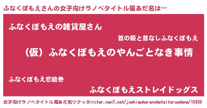 | 肩書あだ名 | 『ふなくぼもえCEO』『ふなくぼもえ総統』 |