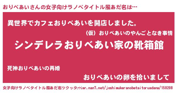 | 男性向けラノベタイトル風あだ名 | 『緋弾のオリベアイ』『おりべあいの憂鬱』 |