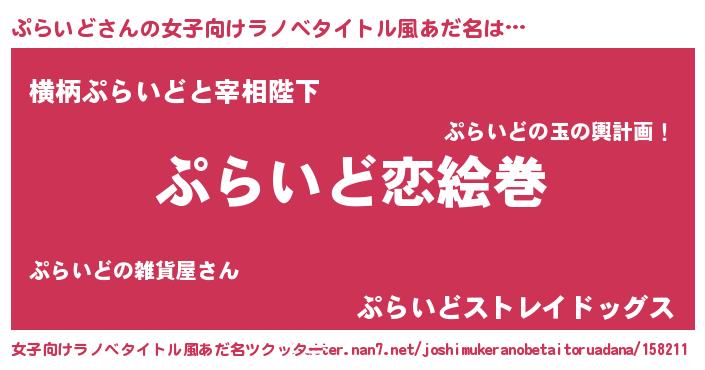 | 男性向けラノベタイトル風あだ名 | 『ノーゲーム・ノープライド』 |