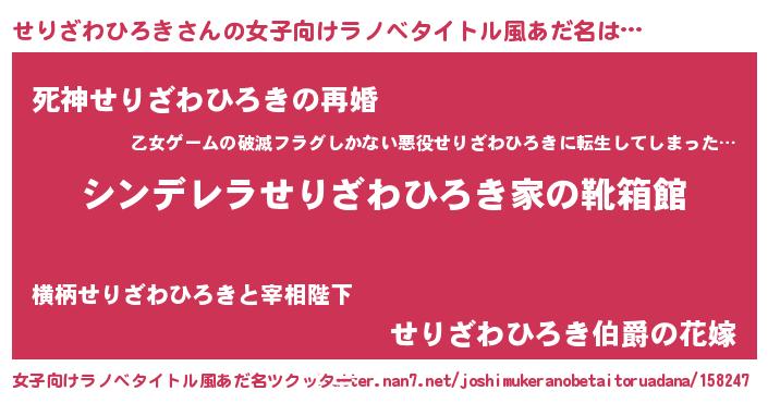 | 胡散臭い通販商品みたいなあだ名 | 『お金では代えられない隕石のかけら…その名も「せりざわひろき」』 |