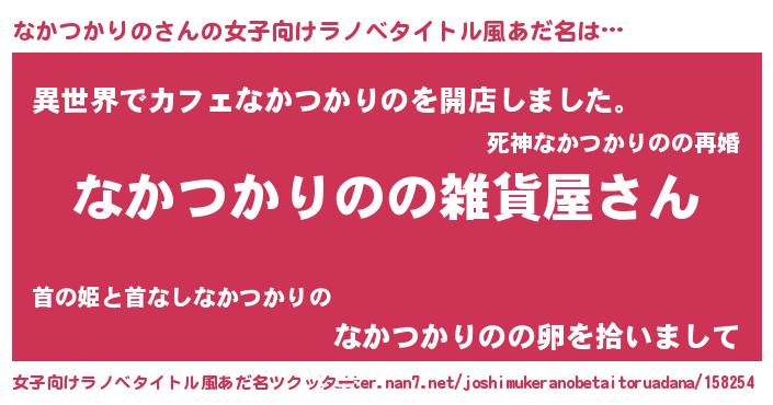 | ファンタジー風あだ名 | 『エターナルナカツカリノー』 |