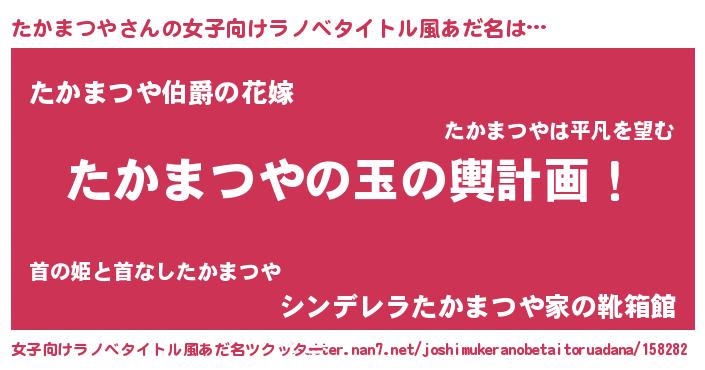| 男性向けラノベタイトル風あだ名 | 『転生したらたかまつやだった件』 |