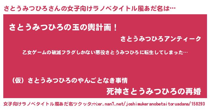 | 男性向けラノベタイトル風あだ名 | 『魔弾の王とさとうみつひろ』 |
