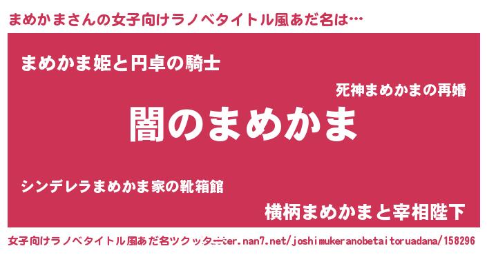 | 男性向けラノベタイトル風あだ名 | 『Re:まめかまから始める異世界生活』 |