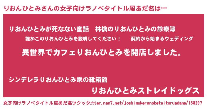 | 男性向けラノベタイトル風あだ名 | 『誰もが恐れるあのりおんひとみが、ぼくの専属メイドになるようです。』 |