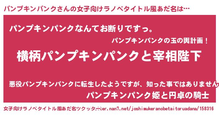 | 男性向けラノベタイトル風あだ名 | 『パンプキンパンクに滅ぼされるだけの簡単なお仕事です』 |