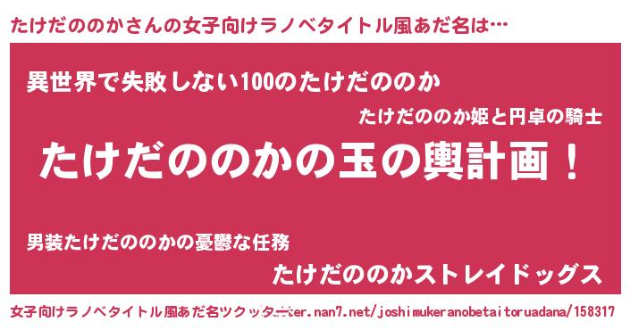| 男性向けラノベタイトル風あだ名 | 『転生したらたけだののかだった件』 |
