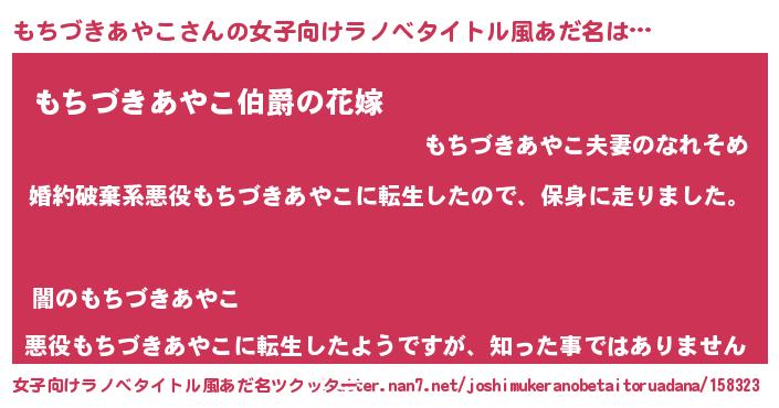 | 男性向けラノベタイトル風あだ名 | 『モチヅキアヤコスレイヤー』 |