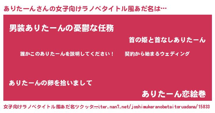 | 胡散臭い通販商品みたいなあだ名 | 『億万長者になれる霊験あらたかなお札…その名も「ありたーん」』 |