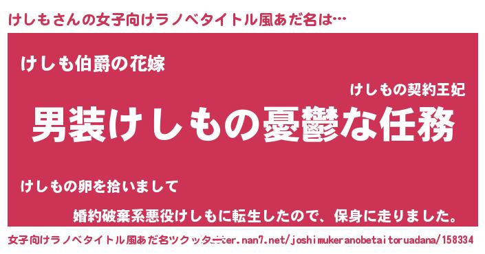 | ファンタジー風あだ名 | 『カークケシラー』『エターナルケシモー』 |
