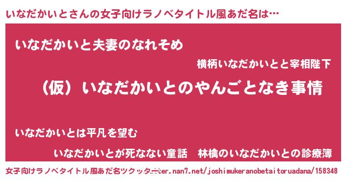 | 男性向けラノベタイトル風あだ名 | 『いなだかいとの憂鬱』 |