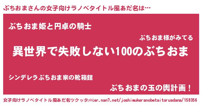 | 男性向けラノベタイトル風あだ名 | 『ぶちおまという概念が存在しない退屈な世界 』 |