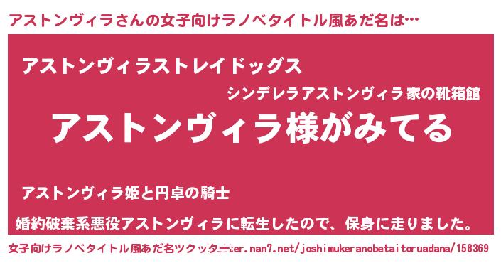 | 男性向けラノベタイトル風あだ名 | 『アストンヴィラの嫁は女の子じゃないと思った?』 |