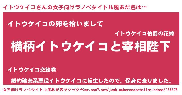 | 男性向けラノベタイトル風あだ名 | 『イトウケイコに滅ぼされるだけの簡単なお仕事です』 |
