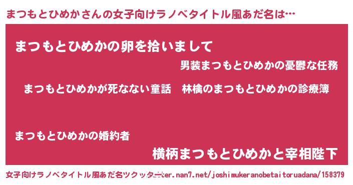 | ポケモン風あだ名 | 『マーツイ』『ヒマツモトヒメカ』 |