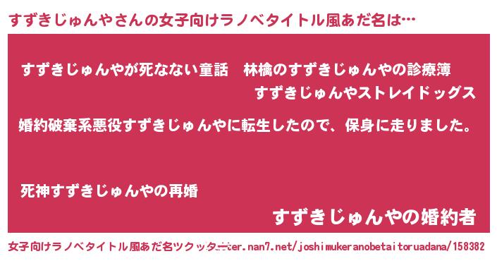 | 男性向けラノベタイトル風あだ名 | 『転生したらすずきじゅんやだった件』 |
