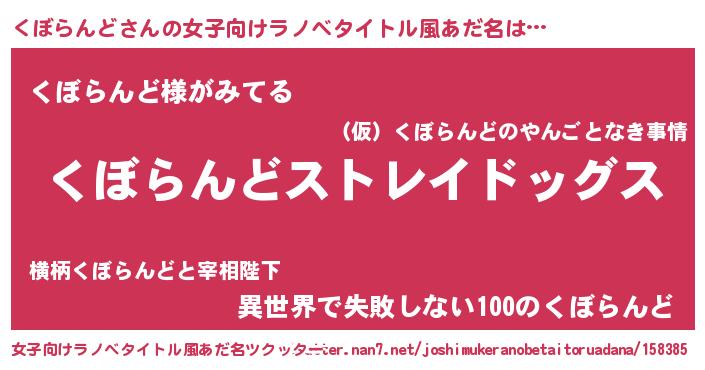 | 男性向けラノベタイトル風あだ名 | 『Re:くぼらんどから始める異世界生活』 |
