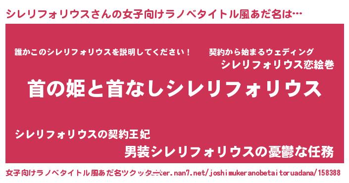 | 男性向けラノベタイトル風あだ名 | 『はたらくシレリフォリウスさま!』 |