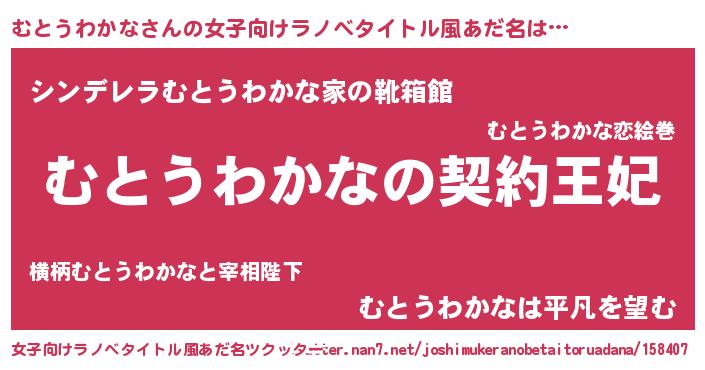 | 意味不明あだ名 | 『永久保存むとうわかな』 |