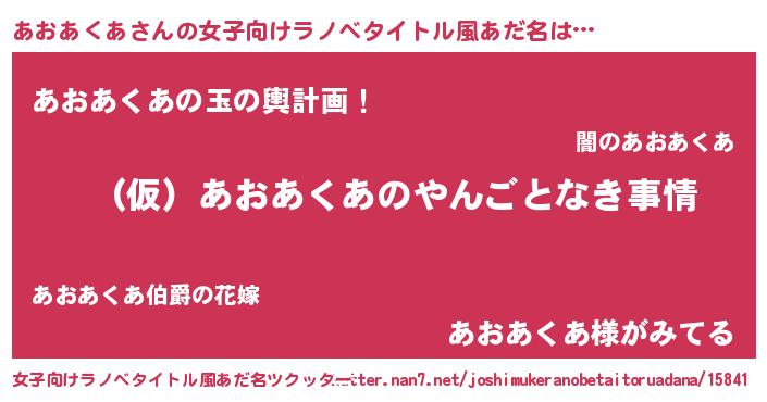 | 男性向けラノベタイトル風あだ名 | 『あおあくあの憂鬱』 |