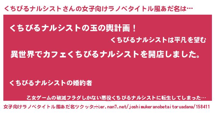 | 男性向けラノベタイトル風あだ名 | 『誰もが恐れるあのくちびるナルシストが、ぼくの専属メイドになるようです。』 |