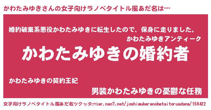 | ファンタジー風あだ名 | 『エターナルカワタミユキー』 |