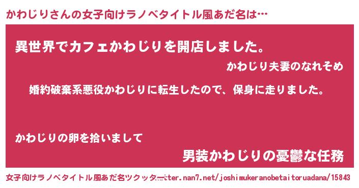 | 胡散臭い通販商品みたいなあだ名 | 『絶対に幸福をもたらす水素水…その名も「かわじり」』 |