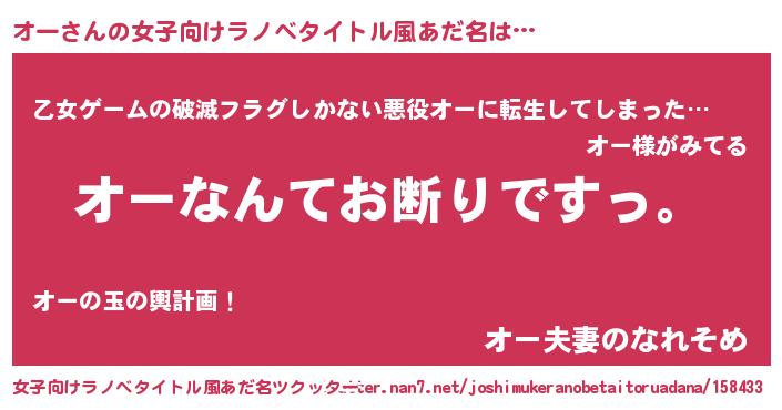 | ヒーロー風カッコイイあだ名 | 『超時空戦士オー』『仮面オーダー』 |