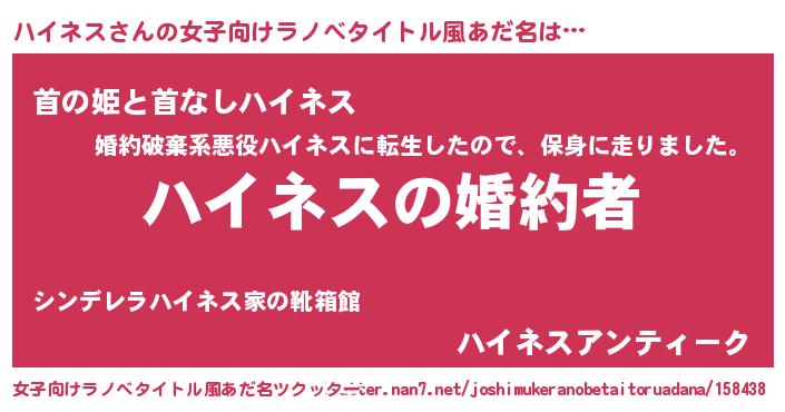 | 胡散臭い通販商品みたいなあだ名 | 『運命の人と巡り会える高級そうな皿…その名も「ハイネス」』 |