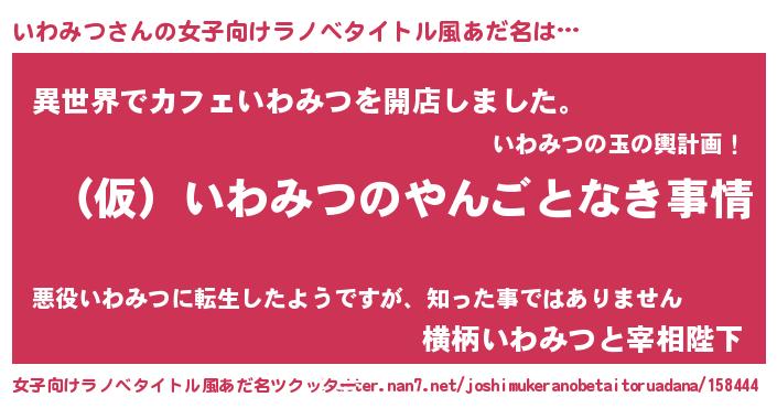 | 男性向けラノベタイトル風あだ名 | 『いわみつの憂鬱』 |