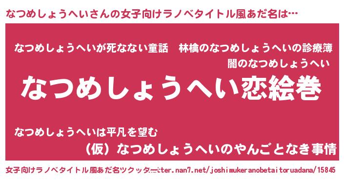 | 男性向けラノベタイトル風あだ名 | 『ノーゲーム・ノーナツメショウヘイ』 |