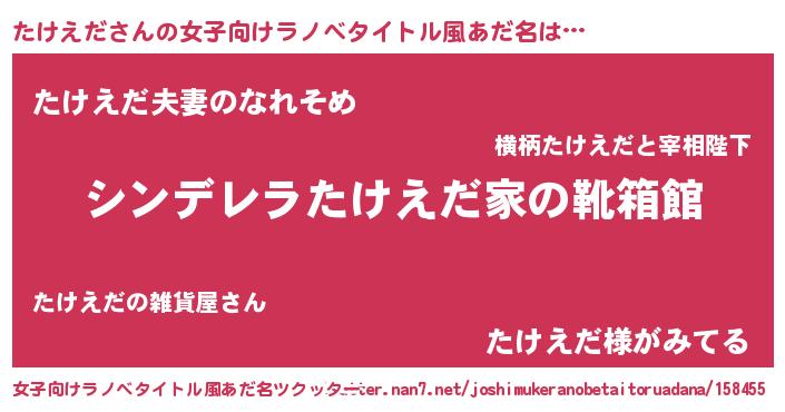 | ヘコむあだ名 | 『たけぷりん』『牛乳』『たけにゅー』 |