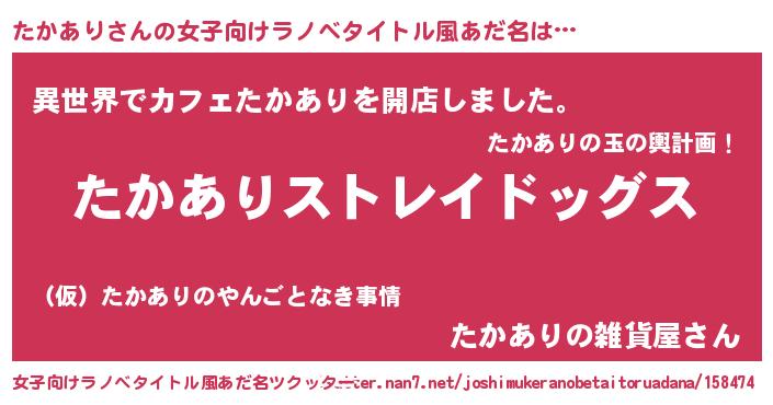 | 意味不明あだ名 | 『自称たかあり』『永久保存たかあり』 |