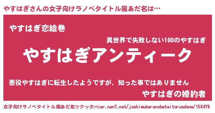 | 男性向けラノベタイトル風あだ名 | 『魔法科高校のやすはぎ』 |
