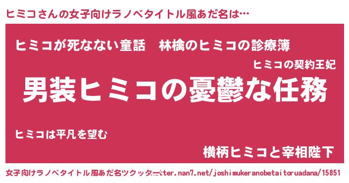 | ヘコむあだ名 | 『ヒミコ(苦笑)』『ヒミぷりん』 |