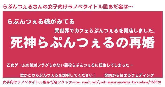 | 男性向けラノベタイトル風あだ名 | 『ノーゲーム・ノーラプンツェル』 |