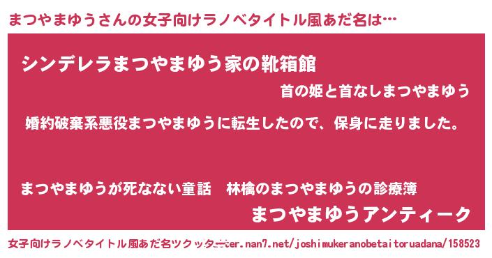 | 男性向けラノベタイトル風あだ名 | 『転生したらまつやまゆうだった件』 |