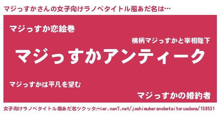 | 男性向けラノベタイトル風あだ名 | 『魔法科高校のマジっすか』 |