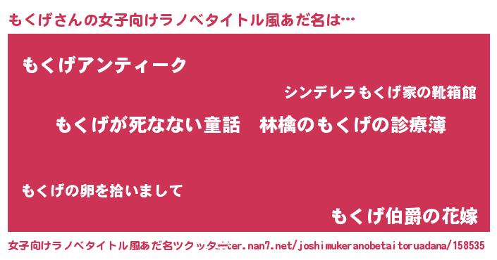 | 意味不明あだ名 | 『住所不定無職もくげ(93歳)』『自称もくげ』 |